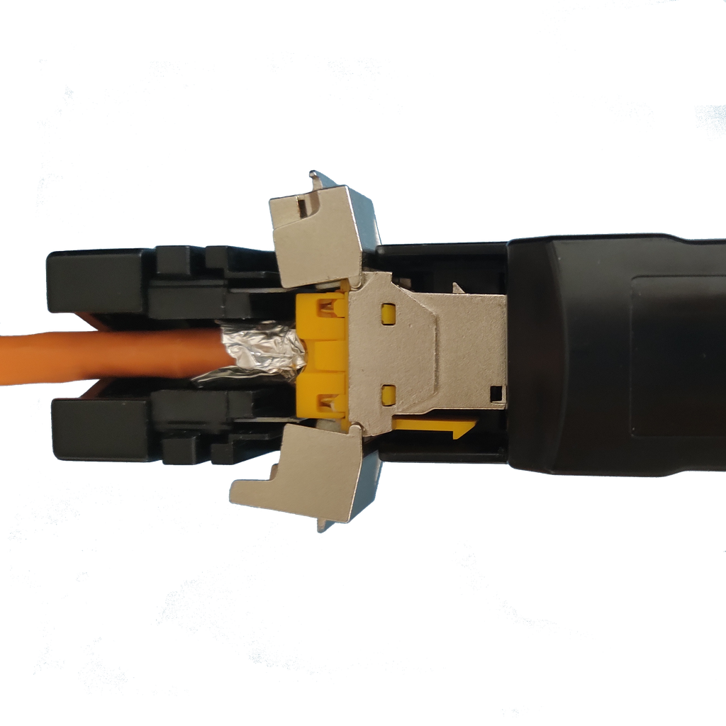 Sie haben am WKS TOOL eine Klinge zum Abisolieren des Mantels integriert und können nach der Aufteilung der einzelnen Adern nach Farbcode in einem Arbeitsschritt alle Adern gleichzeitig abschneiden und den Kabelaufteiler mit den Litzen in die Kontakte pressen. Da die Adern damit bereits in die Kontakte gepresst wurden, ist das Schließen des Jacks mit der Hand nun sehr einfach.